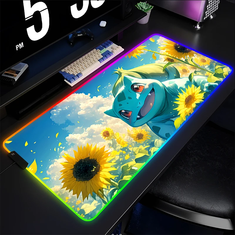 Rubber Mouse Pad P-Pokemon Bulbasaur RGB Backlight Gaming Accessories Carpet HD Print PC Computer Keyboard Desk Mat LED Mausepad