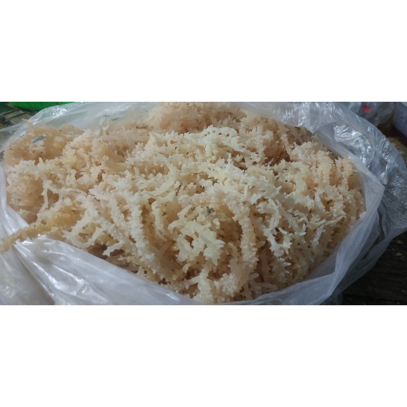 Rumput laut kering cocok untuk bahan utama es. warna yang tersedia Putih(ori), Hijau, Merah, Kuning atau bisa memberi warna sendiri dengan cara cuci rumput laut lalu berikan pewarna makanan secukupnya.