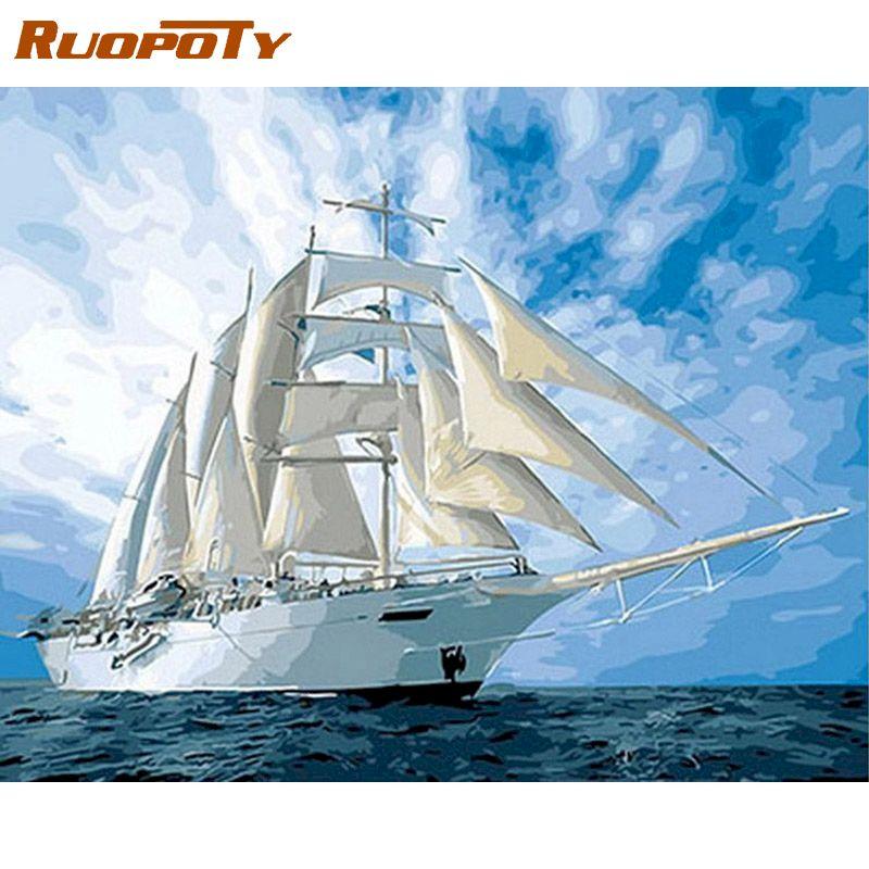 Ruopoty морской пейзаж DIY картина по номерам пейзаж холст картина ручная роспись акриловая краска для домашнего декора 40x50CM NO Frame