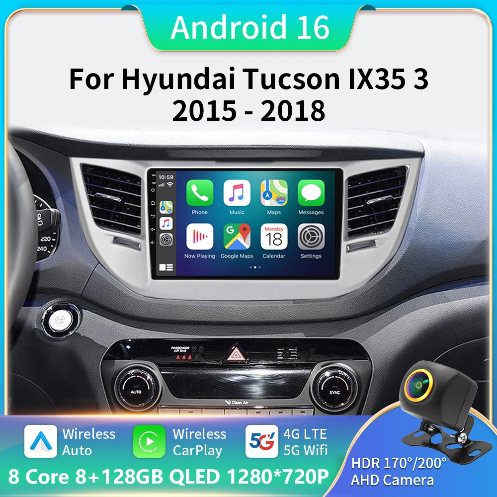 Android 16 Car Radio For Hyundai Tucson 3 IX35 2015 - 2018 Multimedia Player Carplay Auto Navigation GPS New BT No 2din DVD