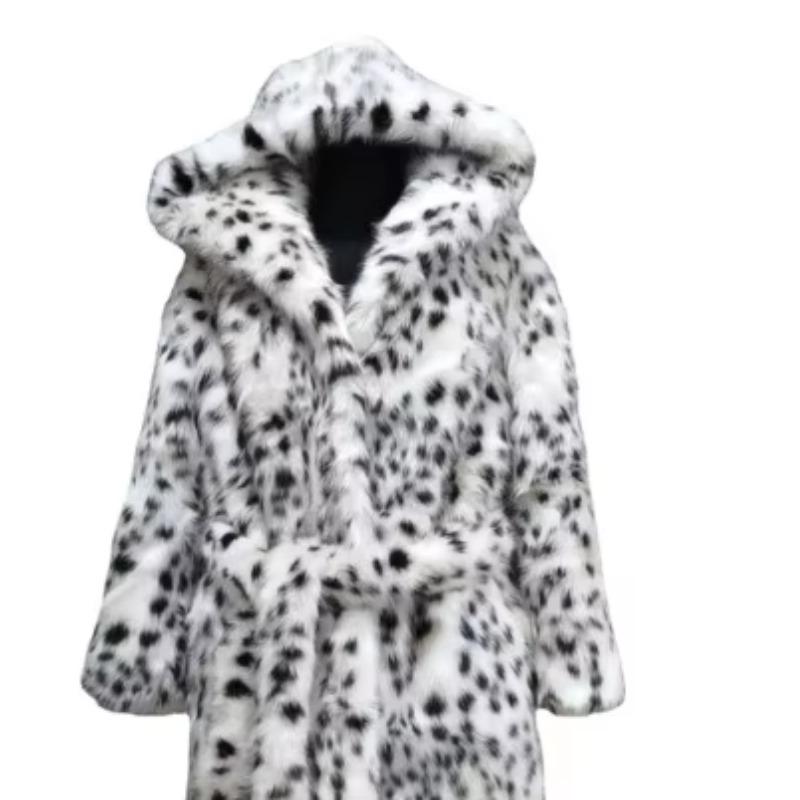 S-2XL зимнее теплое длинное плюшевое пальто женское с искусственным мехом лисы черный белый горошек леопардовый кардиган женская толстая ветровка пальто со шляпой XXL черный белый