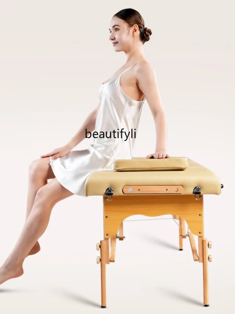 S7486 ss Складная массажная кровать для салона красоты, оригинальная точечная массажная терапия, портативная бытовая кровать для лица из цельного дерева