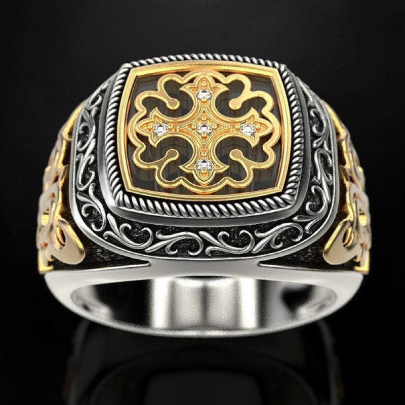S925 Двухцветное кольцо с резным узором, изысканный рельеф, новый стиль