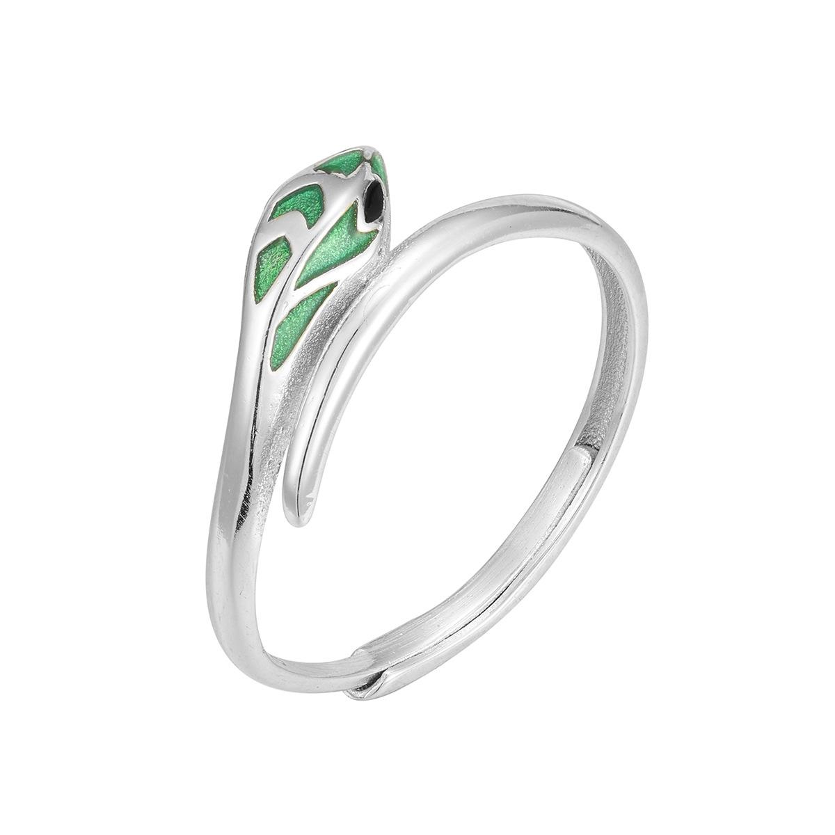 S925 Серебряное эпоксидное маленькое зеленое кольцо в виде змеи, модное легкое роскошное простое кольцо в виде змеи, ювелирная мода Adjustable Opening