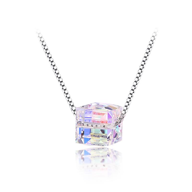 S925 Серебряный Красочный Австрийский Хрусталь Кулон Коробка Цепочка Окно Любви Волшебный Куб Ожерелье