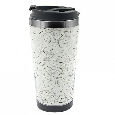 Abstract Travel Mug Bead Shapes and Lines Steel Thermal Cup 16 oz by Ambesonne