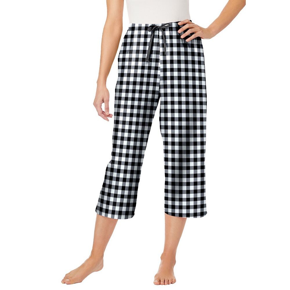 Женские тканые капри для сна Dreams & Co. больших размеров, цвет Black White Check
