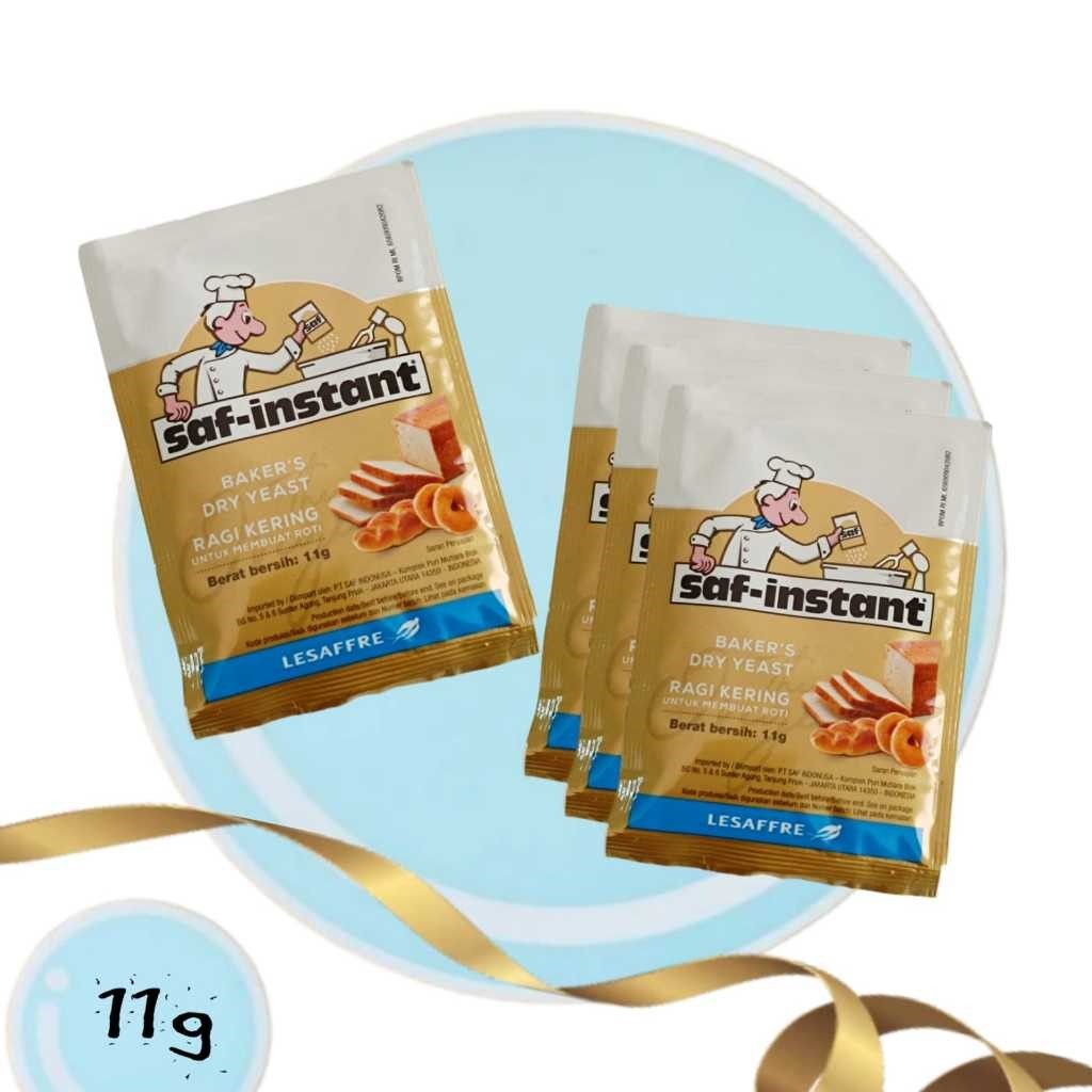 Ragi instant merk saf instant. Kemasan sachet, 1 pack isi 4 bungkus @11 gr. Cepat mengembang dan tahan lama.