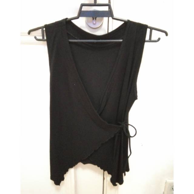Tanktop bertali besar dengan tali yang bisa diikat di pinggir berbahan kaos stretch.
