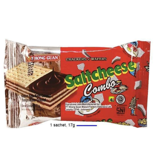 Salah satu varian Cream Sandwiches dari Khong Guan. Khong GUan Saltcheese Combo memadukan kombinasi crackers gurih, krim keju lezat, dan wafer coklat renyah yang dikemas praktis untuk menemani waktu kumpul dan santai bersama teman dan keluarga.