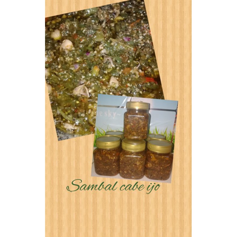 Buat sista2 yang pingin makan sambal tapi gak mau ribet ngulek2. Ini ada yang praktis. Sambal cabe ijo rasa bikin nagih. Sambal terbuat dri bahan2 segar. Ada potongan potongan baby cumi di dalam nya. Yang menambahkan rasa gurih di dalam sambal nya. Kemasan jar 200ml. Isi bersih kurang lebih 175gr.