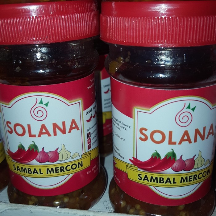 Sambal Mercon Solana terbuat dari cabe rawit murni dengan aroma dan rasa yang khas.. Dijamin menambah napsu makan Anda!