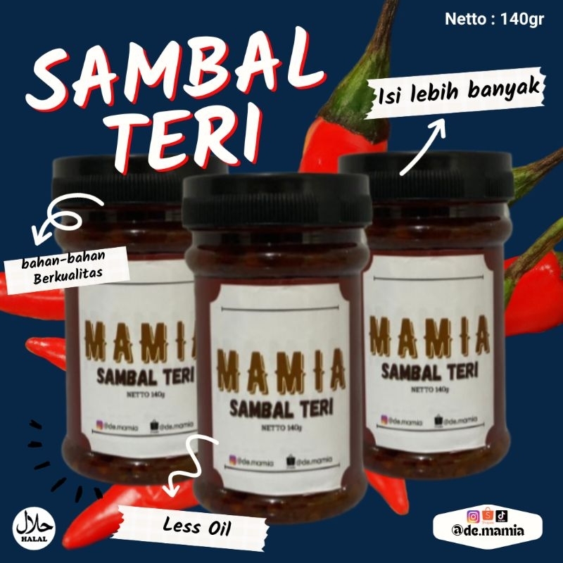 SAMBAL TERI MAMIA 130gr / SAMBAL LESS OIL / SAMBAL TERI / SAMBAL PEDAS