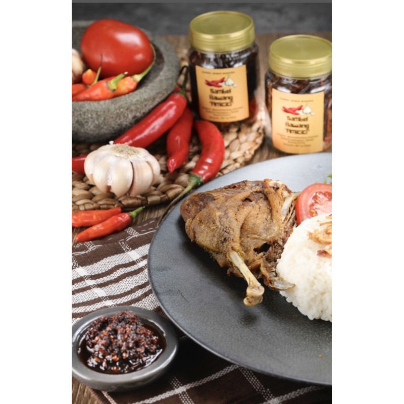 Sambal Bebek Madura diolah dari Bumbu-bumbu pilihah, sehingga sangat cocok dimakan bareng dengan bebrbagai macam lauk seperti Ayam Goreng, Bebek Goreng, Tahu, Tempe, dll.