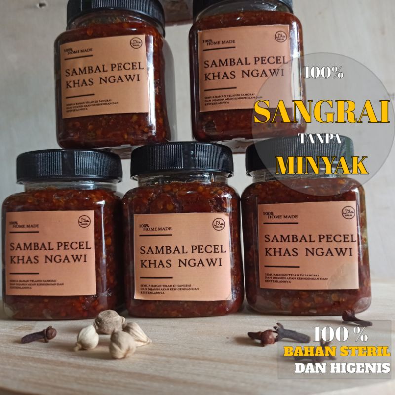 Sambel bumbu pecel NGAWI 200 gram diproduksi menggunakan bahan rempah-rempah pilihan dan diolah dengan baik oleh tenaga yang BERPENGALAMAN Serta semua bahan yang kami gunakan dijamin akan ke higenis an dan kebersihan ya 100% aman untuk dikomsi. Sambel pecel NGAWI hadir dalam kemasan yang praktis untuk mempermudah anda menyajikan hidangan bersama keluarga. Tersedia dengan 3 rasa pilihan, yaitu TIDAK PEDAS, SEDANG dan PEDAS.