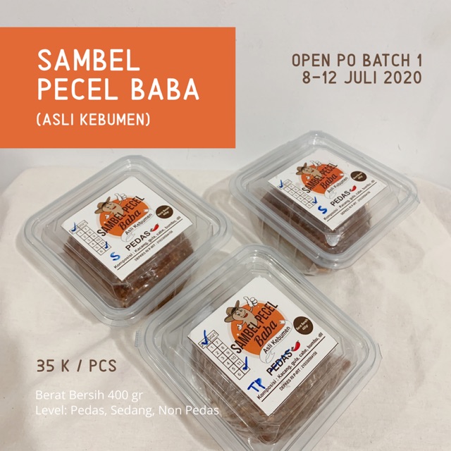 Yuk, buruan di order sambel pecel "BABA" asli terbuat dari kacang kacang pilihan dan pedasnya pas di lidah. Bisa dikirim ke seluruh Indonesia ya. Easy to Go! Cocok buat makan praktis selama #DiRumahAja.