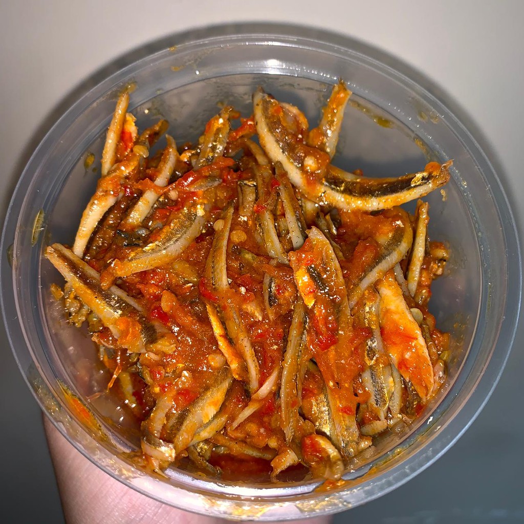 Ikan teri pilihan yang dimasak dengan cabai dan bumbu pilihan