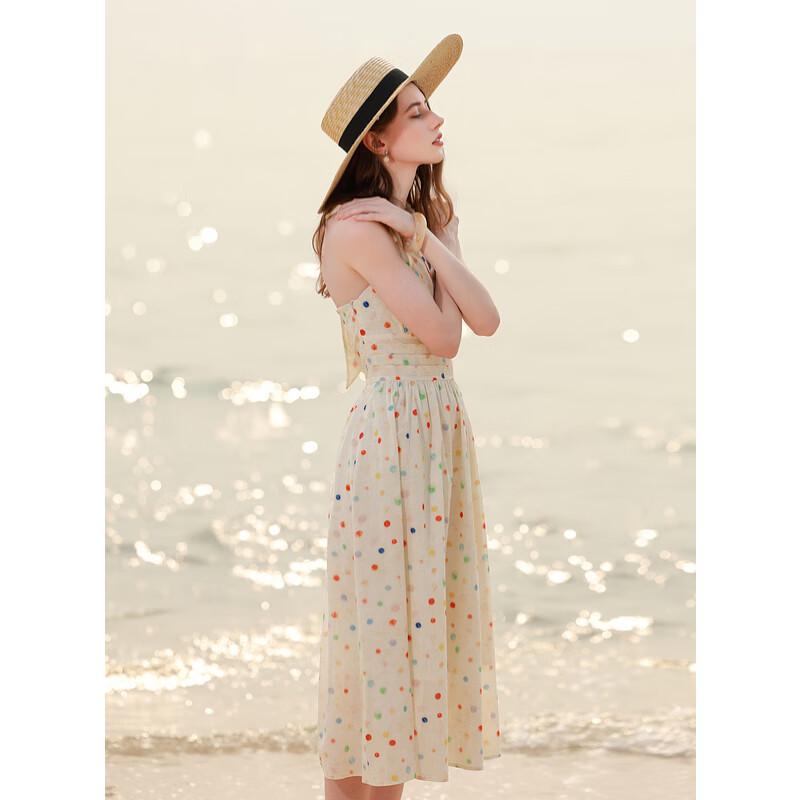 SANCITY 2025 Летнее французское ретро платье-халтер с V-образным вырезом и принтом в горошек XL 170/92A
