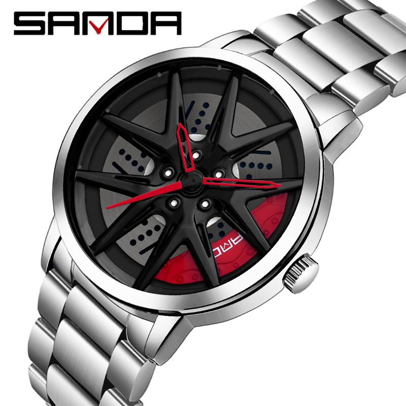 SANDA Новая личность Крутые мужские кварцевые часы Колесо Серия Циферблат Повседневный стальной ремень Мужские часы