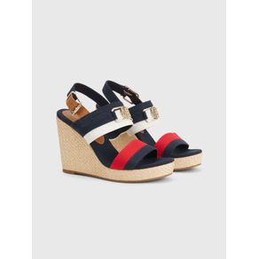 | summary: | Estas elegantes sandalias de cuña alta, decoradas con una brillante insignia del monograma TH en la tira, dan un sofisticado aire veraniego a cualquier indumentaria. Características • Exterior de algodón • Interior de algodón • Plantilla de algodón • Suela de goma termoplástica • Entresuela revestida de yute • Insignia con el monograma TH en la tira • Detalles distintivos en tiras • Detalles distintivos de Tommy Hilfiger Talla y corte • Punta abierta • Altura de la cuña de 10,5 cm • Altura de la plataforma de 3 cm Composición y cuidados • 100 % algodón |