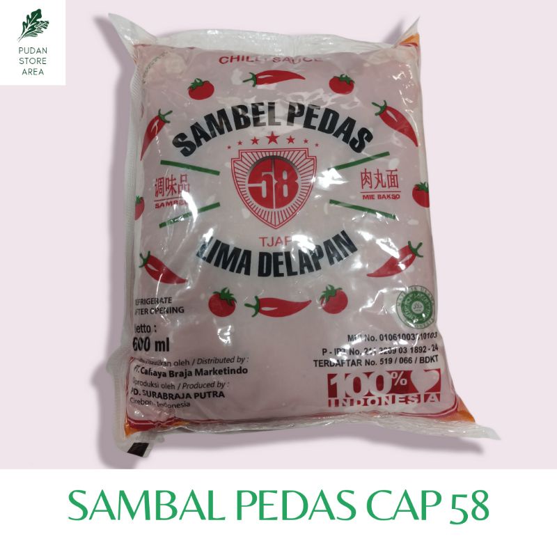 Saos sambal pedas merek 58 cocok untuk baso, mie ayam, batagor,martabak, cilok,cilor dll.