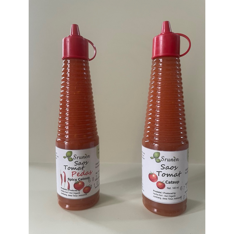 Saos tomat dan saos tomat pedas "Srunen" terbuat dari buah tomat segar dan rempah-rempah lokal. Sehat tanpa MSG, pengawet, pewarna. Gluten free