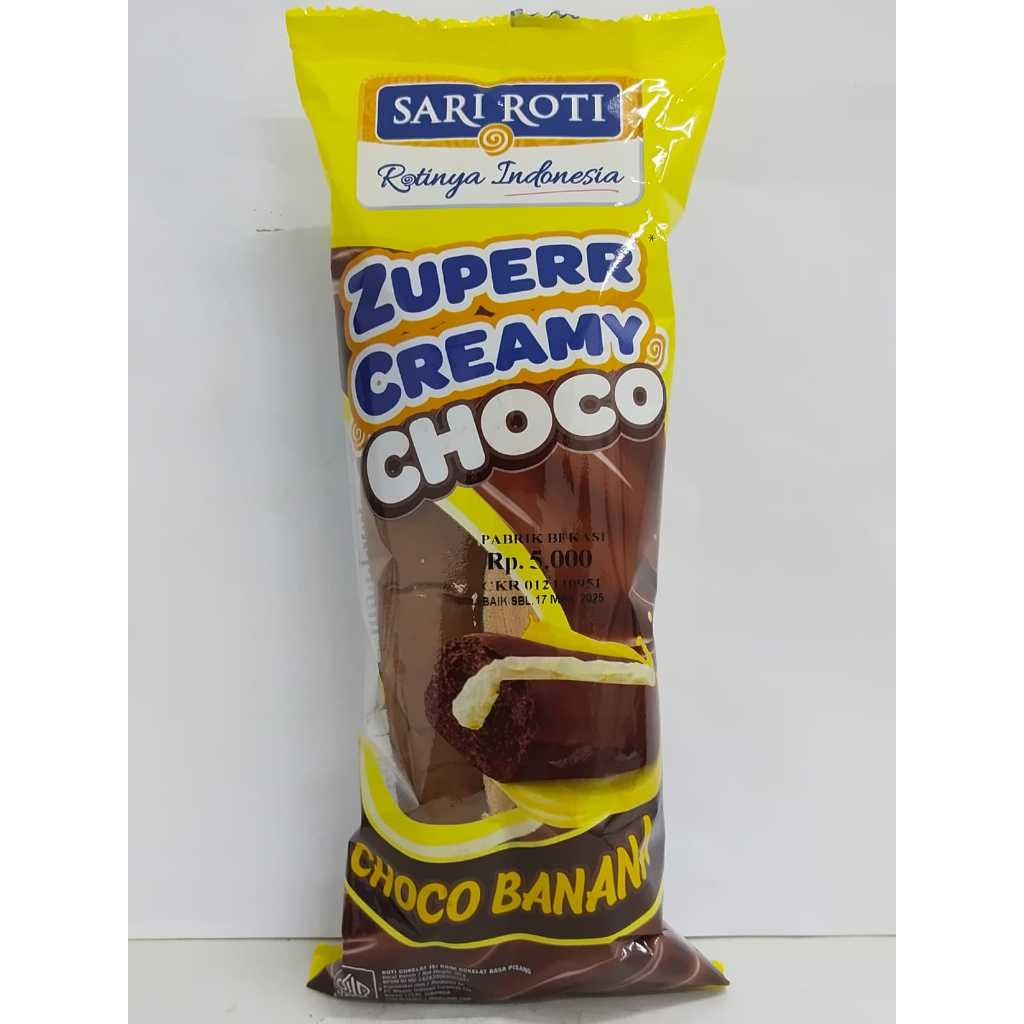 Sari Roti Zuperr Creamy Choco Banana adalah varian terbaru dari seri Zuperr Creamy Choco yang diluncurkan oleh Sari Roti pada awal tahun 2025. Produk ini menggabungkan rasa cokelat dan pisang dalam roti lembut yang dibalut dengan krim cokelat, menawarkan pengalaman rasa yang manis dan creamy.