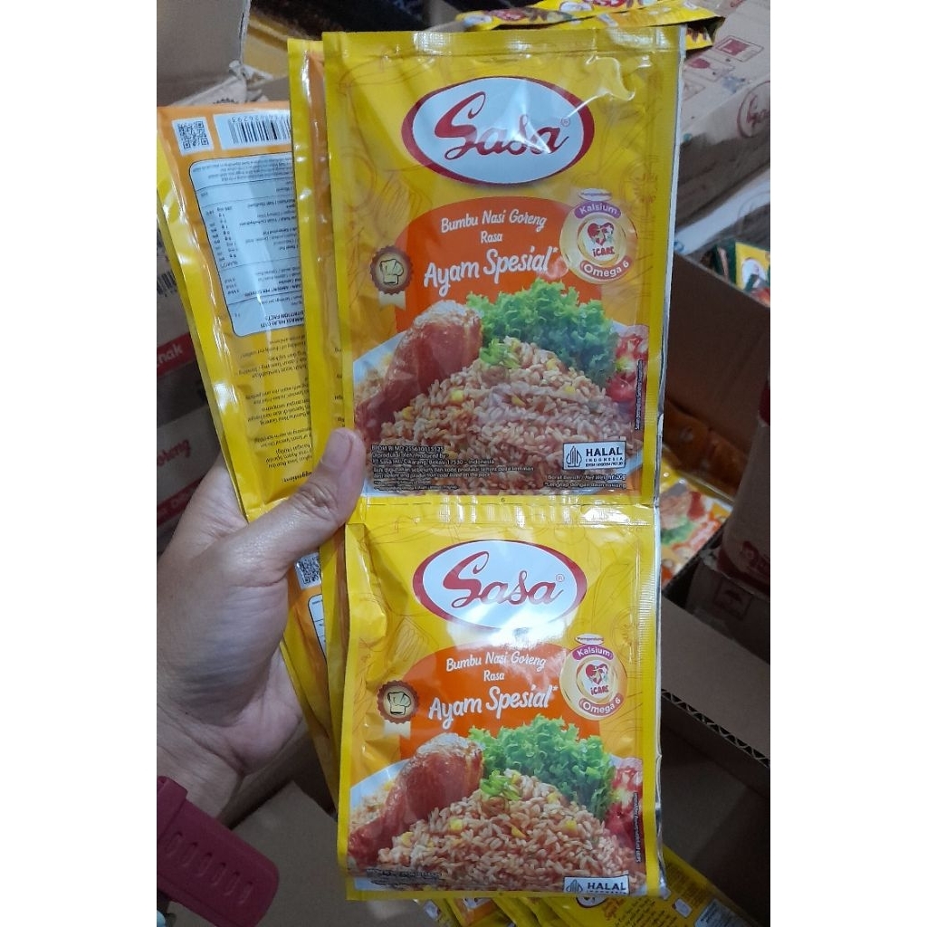 Sasa bumbu Nasi Goreng Rasa Ayam Special adalah bumbu prakis siap masak yg diracik khusus untuk memasak Nasi Goreng dengan mudah dan cepat tanpa harus di olah.lengkap dengan extrak ayam dan daun bawang.sehingga membuat lebih lezat