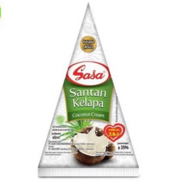 Sasa santan kelapa terbuat dari daging buah kelapa tua segar pillihan. sasa santan kelapa sangat praktis dapat digunakan langsung tanpa harus dimasak,dengan hasil masakan yang sama dan konsisten. Netto 65ml.