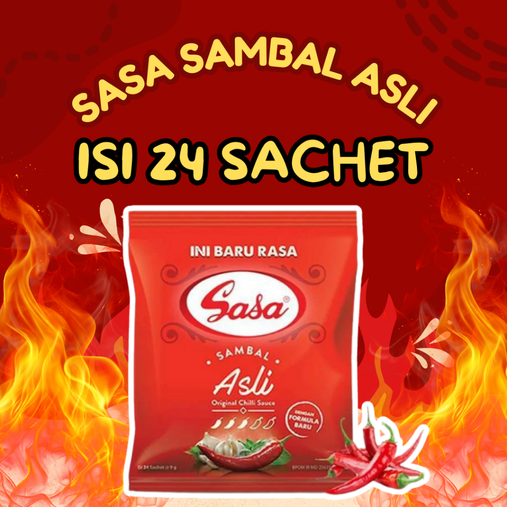 Sasa Sambal Asli isi 24 sachet, praktis untuk dinikmati kapan saja. Rasa pedas nikmat, cocok untuk melengkapi hidangan sehari-hari. Kualitas terbaik!