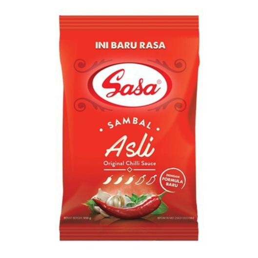 Sasa Saus Sambal Asli saus sambal instan siap makan yang terbuat dari cabai pilihan dan bawang berkualitas diracik dengan kelezatan sambal Indonesia asli, memiliki rasa khas sambal yang cocok di lidah orang Indonesia.