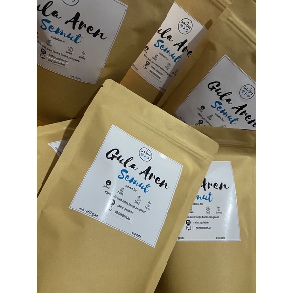 100 % terbuat dari gula aten alami tanpa bahan pengawet, cocok untuk campuran kopi,kue,minuman kekinian,boba, makanan yg menggunakan gula d.l.l
