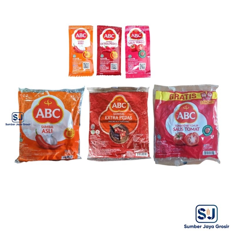 SAUS ABC SACHET RASA TOMAT, SAMBAL ASLI, DAN EXTRA PEDAS 8 GR X 22'S