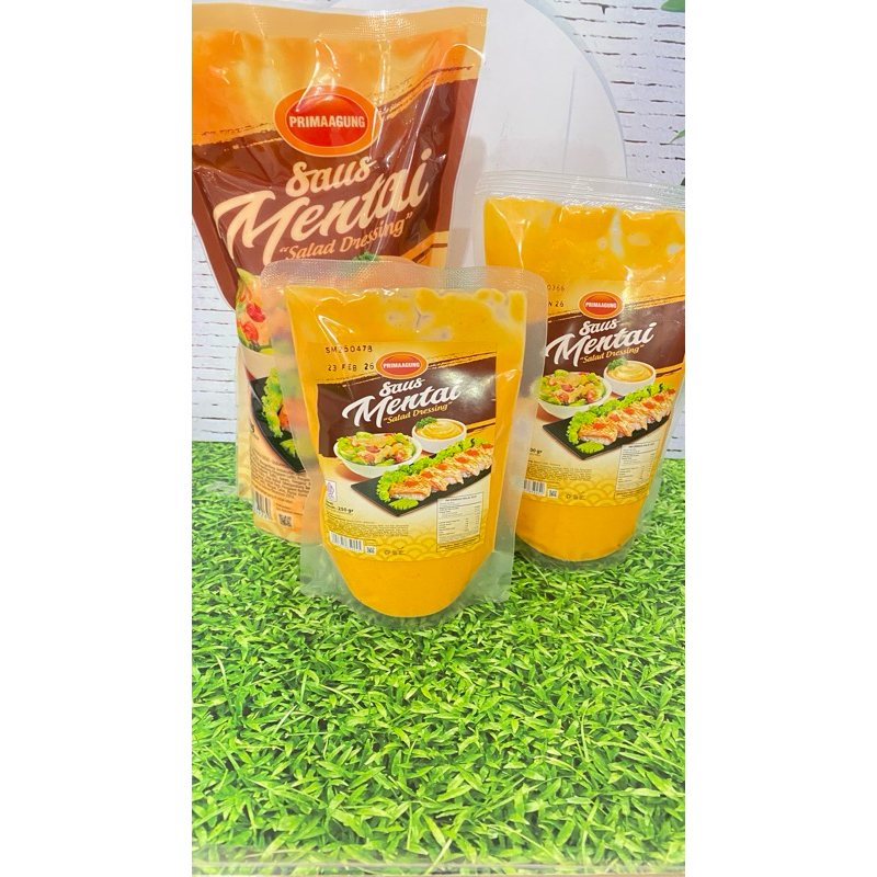 Saus Mentai Prima Agung** adalah saus siap saji dengan rasa mentai khas Jepang, cocok untuk sushi, dimsum, baked rice, dan salad. Produk ini tidak mengandung ikan atau tobiko, sehingga aman bagi yang alergi atau tidak menyukai rasa amis. Terbuat dari minyak nabati dan perisa alami, saus ini memiliki tekstur creamy dan rasa gurih