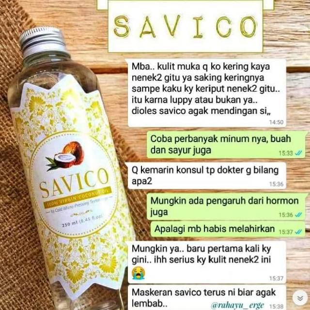 Savico diperas dengan cara cold press sehingga molekul kebaikan kelapanya utuh, tidak rusak dan tidak terpecah