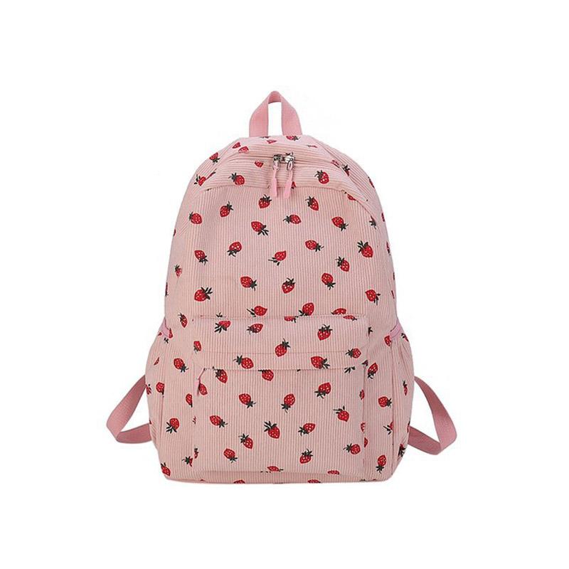 SCIONE Свежий Литературный Ретро Вельветовый Студенческий Рюкзак Милый Принт Клубники Рюкзак для Девочки Вместительный Простой Износостойкий Рюкзак розовый