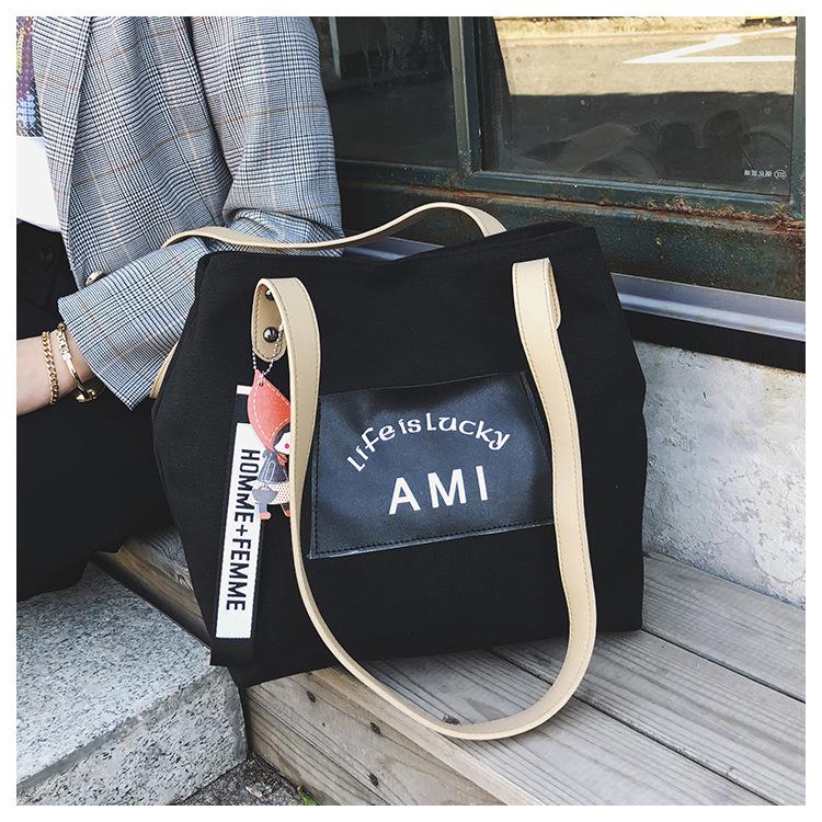 SCIONE женская сумка, новая художественная холщовая сумка, простая и универсальная тканевая сумка, большая сумка на одно плечо 28cm*13cm*28cm чёрный