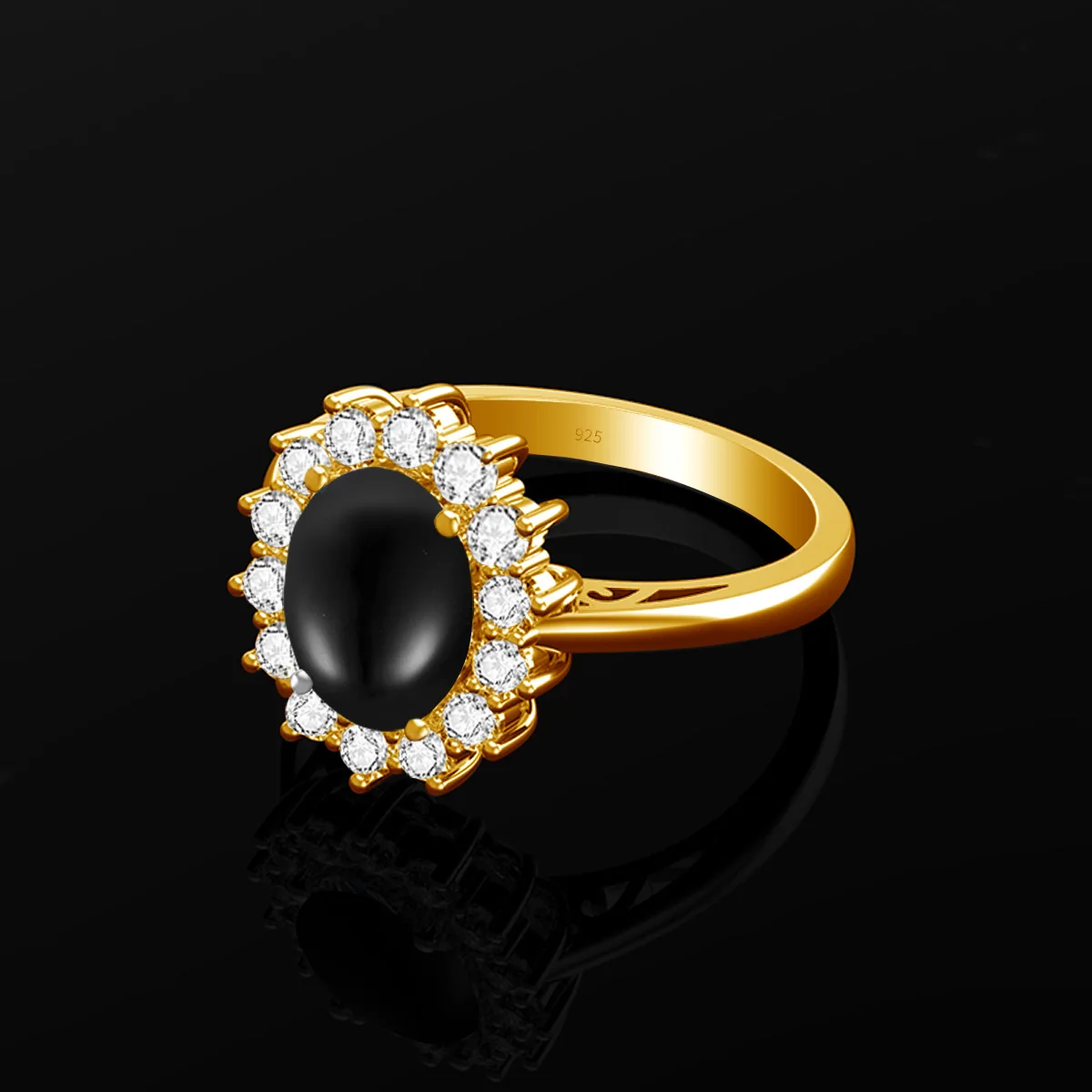 SDOOU 14K Золотое кольцо для женщин 925 Серебряное кольцо камень "черный оникс" Подсолнух "Резные Панк ювелирные изделия из драгоценных металлов, ...
