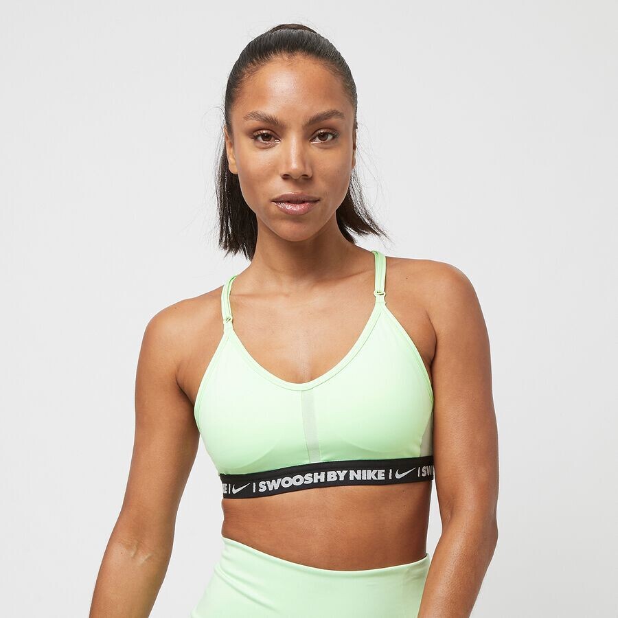 Спортивный бюстгальтер с V-образным вырезом и мягкой подкладкой Indy Light NIKE, цвет vapor green/vapor green/black