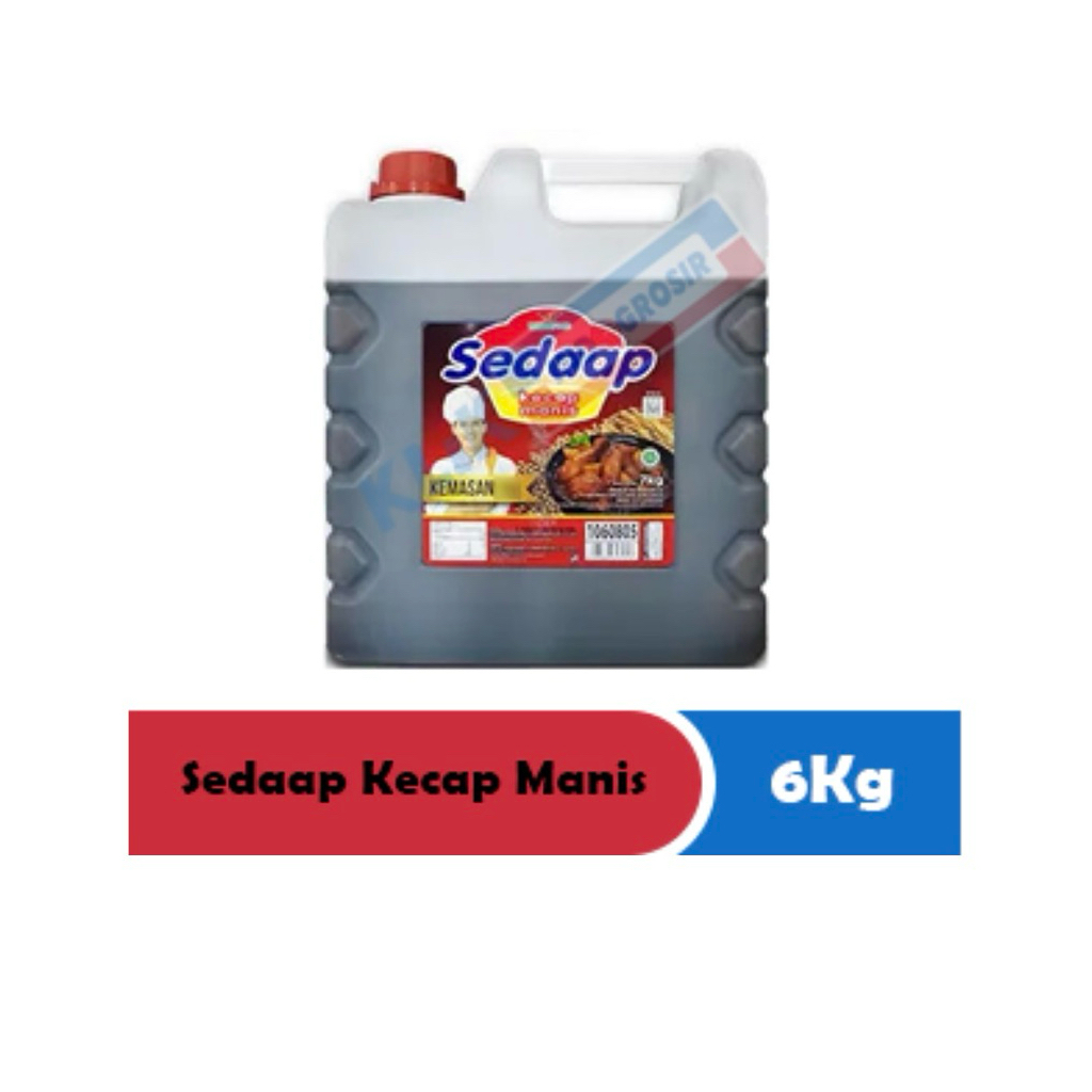 Kecap Sedaap Manis ukuran 6 kg adalah kecap manis dalam kemasan jerigen besar, terbuat dari biji kedelai pilihan dan bahan alami lainnya. Diproses secara modern dan higienis dengan fermentasi dan penyaringan multifiltrasi, menghasilkan kecap yang kental, hitam, dan gurih, cocok untuk berbagai masakan.