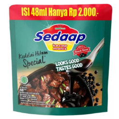 Sedaap Kecap Manis pouch 63 ml merupakan kecap yang terbuat dari bahan-bahan pilihan, tanpa pewarna & pengawet, serta diolah secara sempurna melalui pemurnian ganda, sehingga menghasilkan kecap dengan cita rasa yang gurih, lembut, lezat, dan meresap dengan sempurna dalam seluruh masakan Anda.