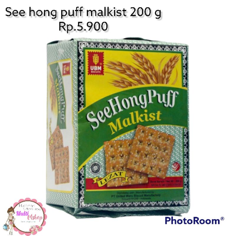 UBM See Hong Puff Malkist 260 gr Biskuit Malkist Padat dan Renyah merupakan salah satu produk makanan ringan biskuit produksi PT United Waru Biscuit Manufactory. Dengan Sertifikasi halal MUI dan sertifikasi HACCP (LTIPB-SHACCP-002-2004) membuktikan bahwa UBM See Hong Puff Malkist aman untuk dikonsumsi.