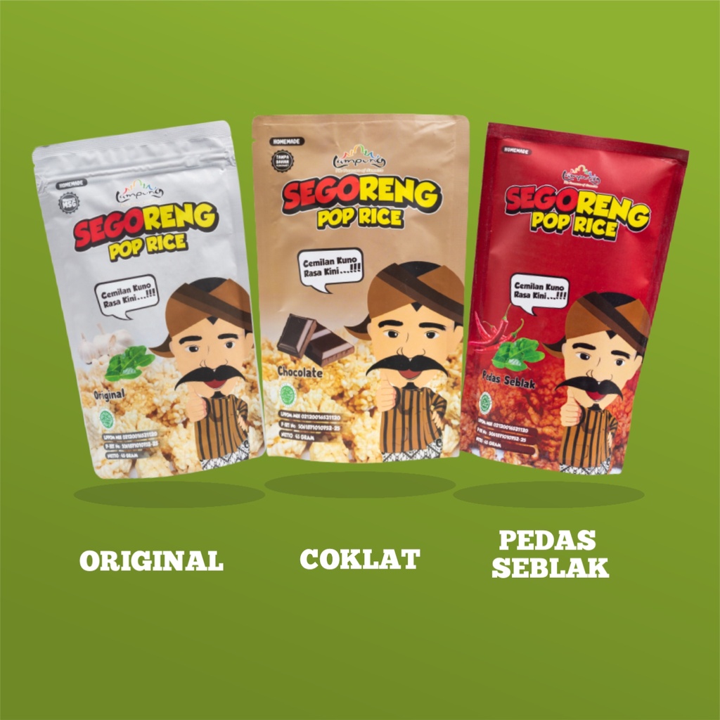 SEGORENG ORIGINAL, SEGORENG COKLAT, DAN SEGORENG PEDAS SEBLAK merupakan kerupuk nasi kekinian yang berpadu dengan taburan bumbu pilihan dan rempah tradisional. Makanan khas lokal dan produksi home-made.