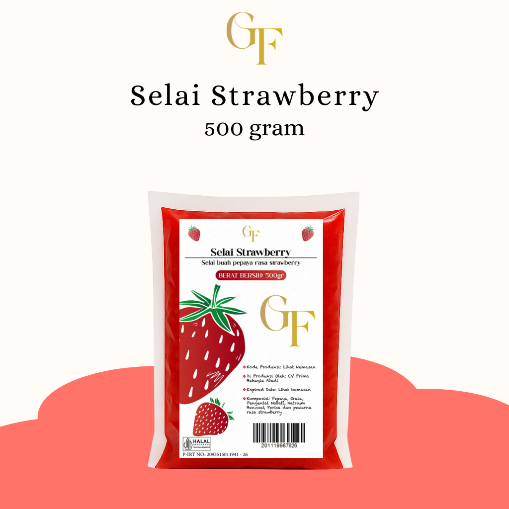 Selai rasa strawberry merk GF kemasan 500gr, Tekstur yang lembut dan rasa yang manis cocok digunakan sebagai isian roti, donat, roll tart. Terbuat dari bahan pilihan yang berkualitas sehingga menghasilkan selai yang enak sekali untuk dinikmati.