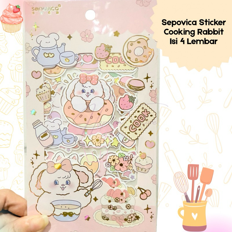SEPOVICA Sticker Cooking Rabbit 1 Pack isi 4 Lembar / Sticker Hiasan