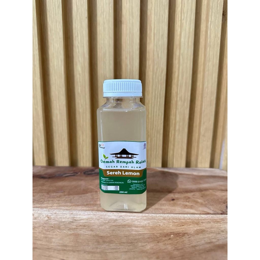 Minuman berbahan baku alami, sereh dan perasan jeruk lemon, tanpa pengawet, tanpa pewarna kimia, tanpa penguat rasa kimia, diproduksi sendiri