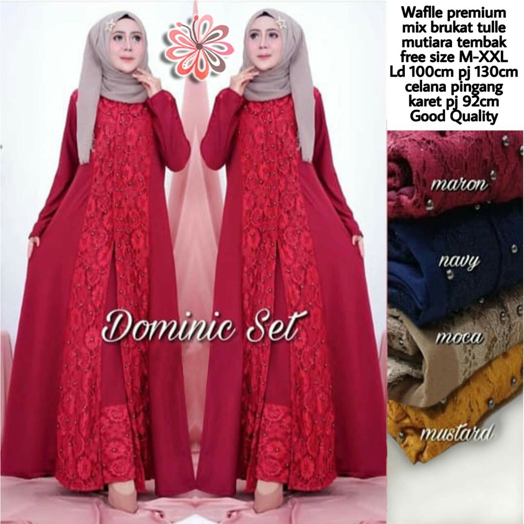 Bahan wafel premium mix brukat tulle mutiara tabur tembak Maxy LD100cm Pjg130cm + Celana Pjg92cm Pinggang karet