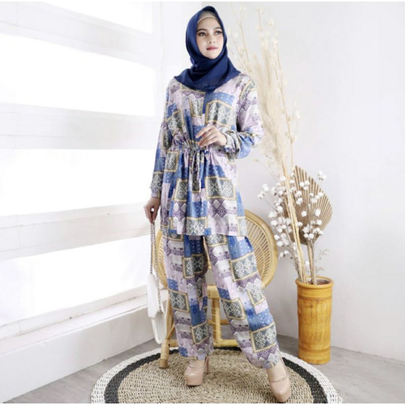 BAHAN RAYON, LD 116CM PB 78CM, SLETING DEPAN BUSUI + CELANA PJG 98CM, KANTONG KANAN DAN KIRI, TANPA PASHMINA .