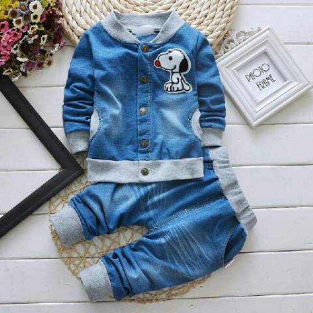 atasan denim full komb spandek abu(LD70,pj44), kancing buka full,celana panjang ada saku(lp40-60,pj57) fit 3-5thn)