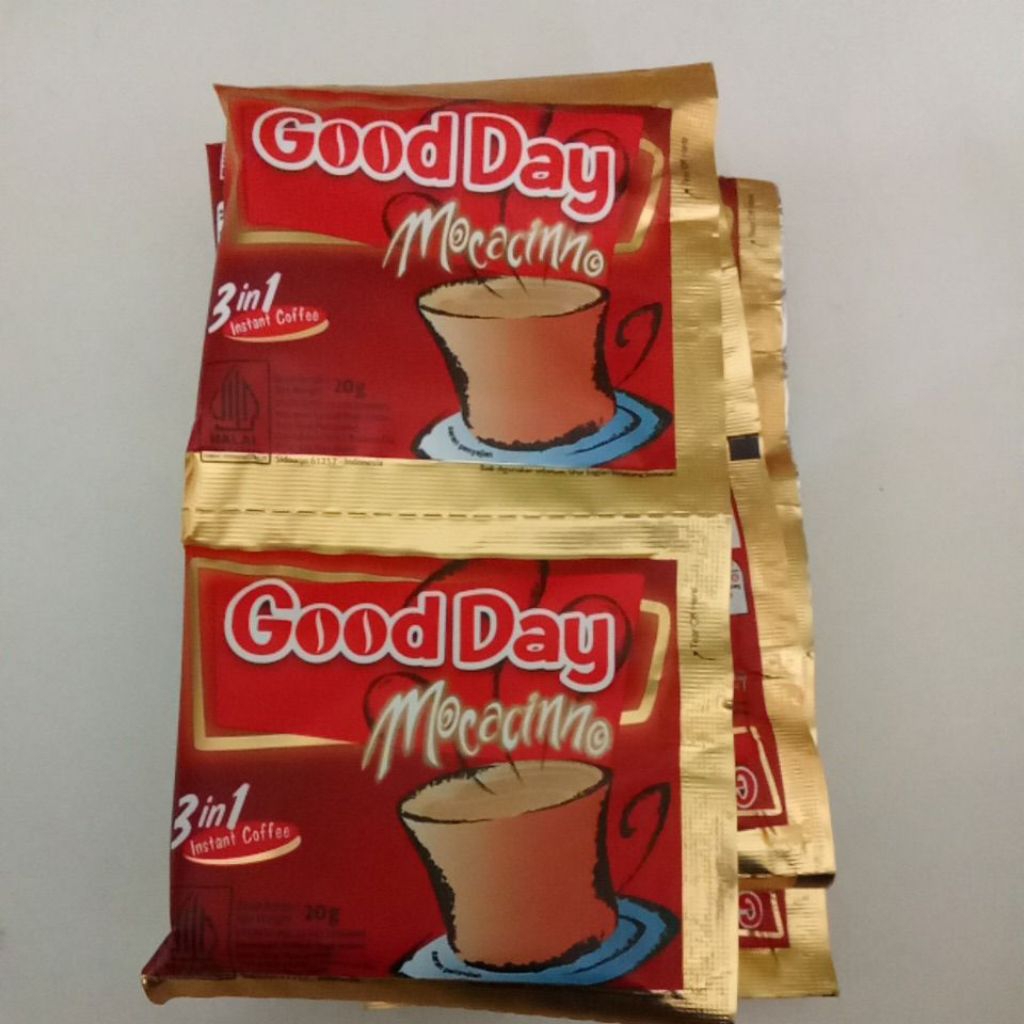 Good Day Mocacinno adalah kopi instan dengan rasa mocacinno yang populer dan mudah diseduh, tersedia dalam kemasan sachet dan botol. Kopi ini menawarkan perpaduan rasa kopi dan cokelat yang nikmat.